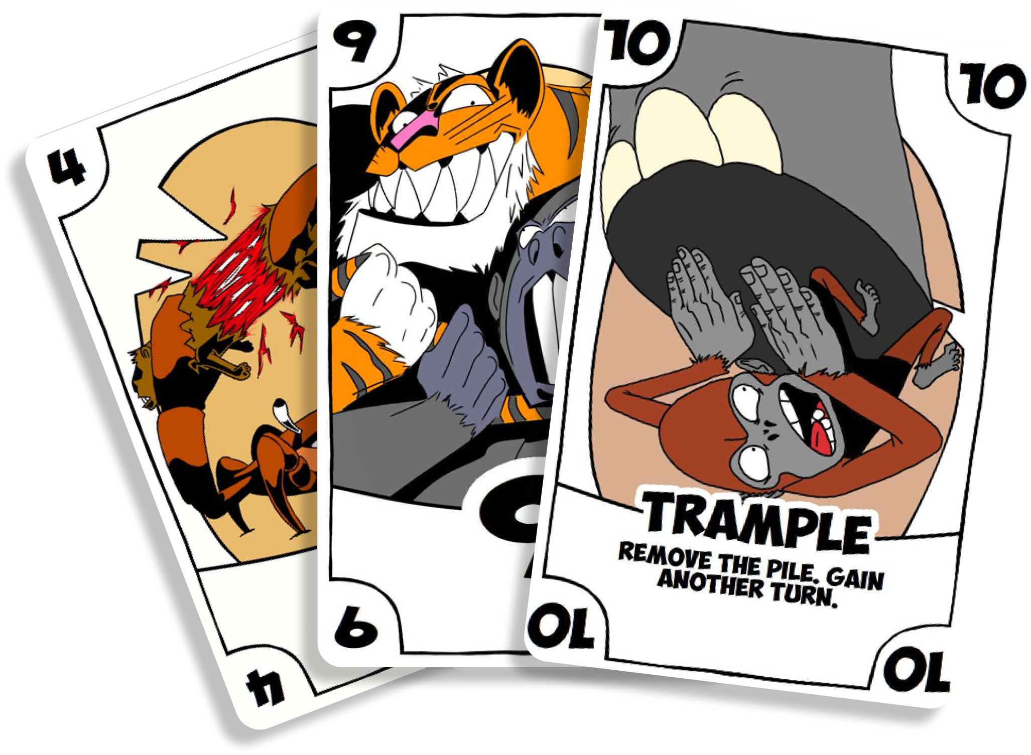 “All you can eat” is a card game themed around the foodchain, represented by cards of animals fighting each other. The ultimate Goal of the players is to get rid of all their cards, they utilise various abilities to make it easier for themselves to lose more cards and other abilities to make it harder for the other players to do so.