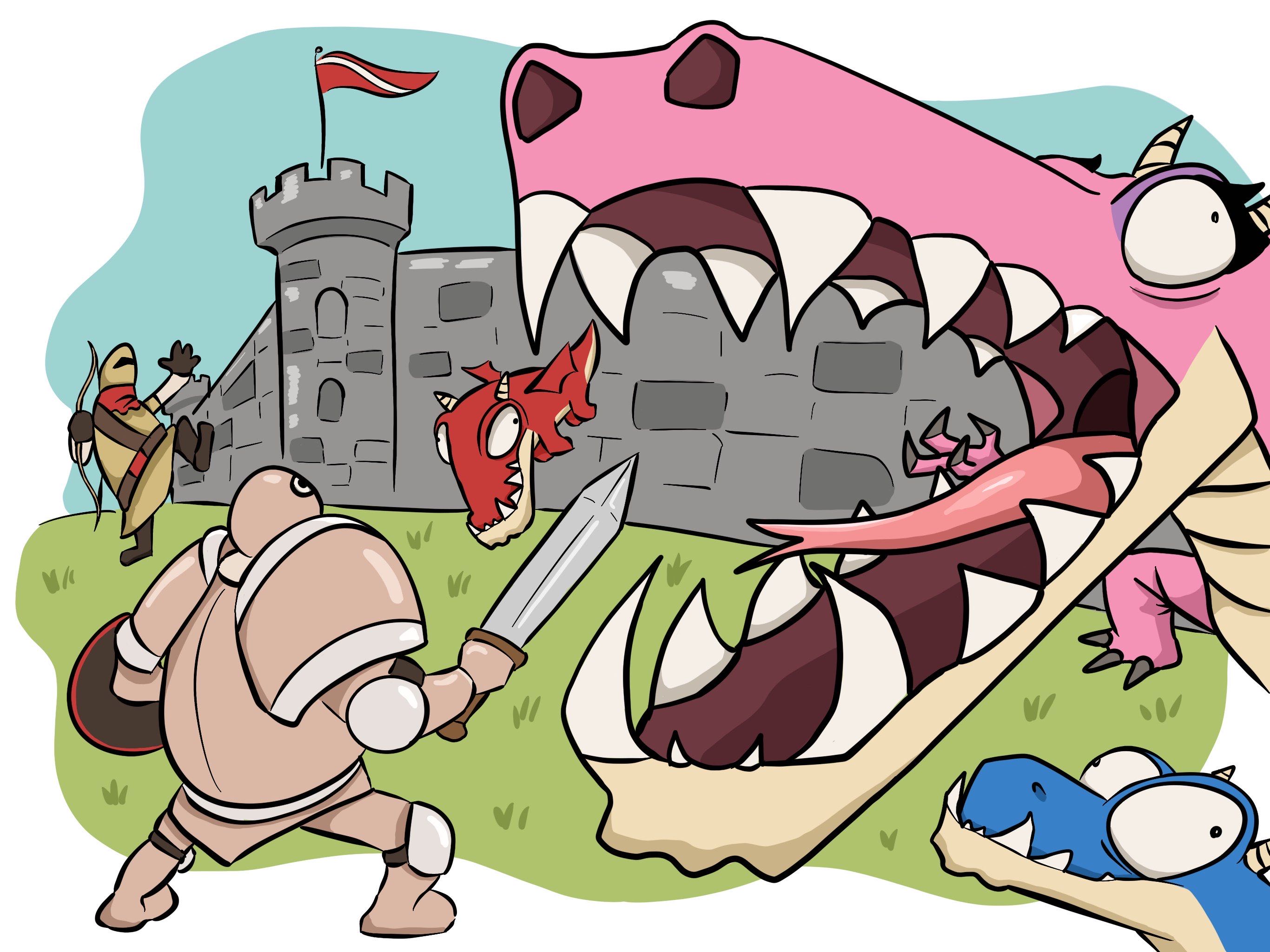 Dragon Feast is a single-player rogue-like game about a Dragon breaking into a castle to retrieve its eggs while def/-eating all his opponents along its way. Players can expect a fast-paced combat system, an artsy medieval setting and a goofy dragon.